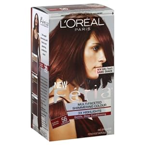 Loreal Feria hair color. That's the color I get... or most recently used. I usually do more reds, but felt like doing an auburn-y thing since my hair is ombre right now with blonde ends. Anyway, I've been dying my hair for almost 10 years. I've gone through so many different products and spent a good 5 years getting it done professionally, then realized that's way too expensive and not worth it. So, I do it myself now. And Feria is the best dye I've ever used. The colors look so much richer, it's easy to apply, it smells good, and Elizabeth Banks is the spokesperson. And THAT MATTERS TO ME. It's about $12... and I do it every 2 months or whenever necessary. Saves me about... $68.